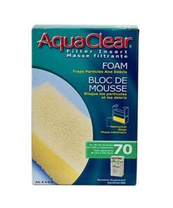 Details: Amazon.com AquaClear 70 Foam Filter Insert provides mechanical filtration in freshwater or marine environments by trapping particles and debris. The porous construction provides numerous bacterial attachments, and in addition the AquaClear 70 Foam Filter Insert offers powerful biological filtration. The Aqua Clear Foam Filter Insert is long lasting and reusable, and was exclusively designed or the AquaClear 70 Power Filter. AquaClear Power FilterThe AquaClear Power Filter represents one of the most versatile hang-on filter systems available. The five models available provide a complete selection of flow rates for the most popular sizes of aquariums. The filter’s unique design allows for up to six times more media volume and the longest water to media contact time in the industry.Superior Contact with AquaClear FilterPatented Re-filtration System Sometimes delicate fish and plants require a more gentle water flow. The patented AquaClear re-filtration system allows you to control the flow rate without compromising filtration efficiency. When the flow rate is reduced, up to 50% of the water within the filter chamber is processed multiple times.CycleGuard Multi-Stage Filtration System Provides optimal mechanical, chemical, and biological filtration. A healthy aquarium requires “beneficial” bacteria. Invisible and harmless, beneficial bacteria are essential in the removal of toxic ammonia and nitrite. With cartridge filtration systems, when you throw away the cartridge, you throw away beneficial bacteria. It can take weeks for the bacteria to re-colonize, resulting in a stressful environment.Typical Filter Media Placement:BottomAquaClear Foam Insert, which does the following: 1. Helps with debris removal and provides optimal water distribution patterns, allowing subsequent filter media to perform at full efficiency. 2. Biological filtration, due to the porous structure of foam, providing surfaces for beneficial bacteria.MiddleAquaClear Activated Carbon Filter Inserts contain 100% premium research grade carbon. Premium research grade carbon provides large amounts of surface area for adsorption of undesirable impurities.TopAquaClear BioMax Filter Inserts contain BioMax ceramic rings. The surface of BioMax is made up of a complex pore system that allows bacteria to thrive.AquaClear Power FiltersPower Filter MaintenanceFor maximum filter operation and efficiency, regular cleaning of the filter and its parts is recommended every two weeks.Always unplug the Aquaclear Power Filter prior to cleaning.First you want to remove the cover, filter basket, and discard water remaining in the filter case. Thoroughly rinse collected debris from the case, impeller cover and impeller assembly using clear lukewarm water.Then intake “U” tube and extension tube can be cleaned with a filter stem brush to remove any build-up of deposits.When all parts have been cleaned and thoroughly rinsed, reassemble filter and replace any scheduled media. Install the filter once again back on the aquarium making sure that the filter is tipped slightly forward.Then fill the AquaClear filter box with aquarium water. Finally plug the filter into an electrical outlet and the AquaClear will self-prime and begin running in a few seconds.Media ReplacementAquaClear Foam Filter Insert: Replace Foam Filter Insert every two months. AquaClear Activated Carbon Filter Insert: Replace Activated Carbon Insert every month. AquaClear BioMax Filter Insert: Replace BioMax Insert every three months.Warranty The AquaClear Power Filters are guaranteed against defects in material or workmanship under normal aquarium usages and service for as long as you own the filter. We offer a Lifetime Guarantee on all non-replaceable parts which means that the filter will be repaired or replaced at the manufactures discretion, free of charge, when the complete pump is returned with proof of purchase and postage paid. Please include $5.00 to cover shipping and handling. This warranty does not apply to