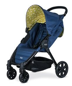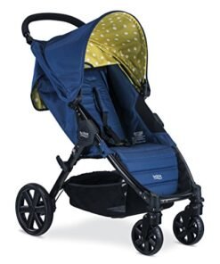 Details: Turn heads on every stroll with the Pathway Lightweight Stroller. The Pathway is lightweight for easy transport and its maneuverable, swivel front 4 wheel design allows you to stroll effortlessly. Bold, colorful patterns peek out from below the UV 50+ canopy so your personality can be on display. The large canopy provides extra protection for your child on sunny or rainy days, while the near flat recline keeps them comfortable on the go. A linked parking brake locks both rear wheels with a single step. The one hand fold stroller features an all wheel suspension system that offers a smooth, comfortable ride. A zippered storage pocket and an extra large basket make it easy to bring along everything you need. Make a brilliant travel system that is perfect for your on the go lifestyle; simply click your child’s infant car seat into the stroller for a lighter, more convenient way to travel. The Pathway Stroller is compatible with all Britax and BOB infant car seats. Fits children from birth to 55 pounds. Maximum unfolded stroller dimensions 33″ L x 23″ W x 40″ H. Interior seat width 11”.