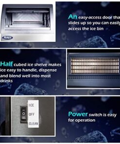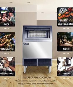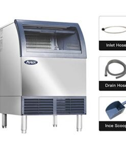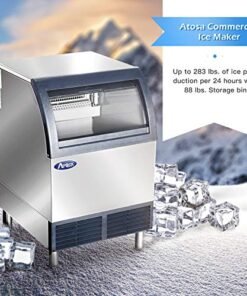 Details: Ice Maker with Bin, cube-style, air-cooled, self-contained condenser, 23.7″W x 28.5″D x 38.6″H, production capacity up to 283-lb/24 hours, 88 lb storage capacity, stainless steel exterior, 6″ adjustable legs, includes: ice scoop, removable air filter, includes: 3M ICE120-S Water Filter System, R290 Hydrocarbon refrigerant, 115v/60/1-ph, 7.2 amps, cETLus, ETL-Sanitation, NSF, ENERGY STAR (drain required)