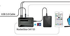 Details: The RocketStor 5411D is the industry’s most versatile USB 3.0 connectivity solution for Mac and PC platforms. It combines the convenience, speed and flexibility of a multi-port USB 3.0 controller, card-reader, SATA drive dock and universal charging station into a single compact device! All-In-One USB 3.0 I/O Solution The RocketStor 5411D is more than just a simple USB drive dock – it is a complete, USB 3.0 I/O connectivity solution! Manage all of your USB peripherals, SD memory cards, audio devices and storage from a single, compact docking station! Each of three USB 3.0 ports provide two functions: a universal USB charging station and a single connection point for all of your USB peripherals including printers, scanners, headsets and input devices. The built-in audio jacks support headsets and recording devices, and an integrated Ethernet port allows you to access USB devices over a local network connection and supports Remote Wake Up via USB. Easily access SATA drives of any generation, size and performance level! An integrated, modular drive bay supports any industry standard 3.5” and 2.5” SATA drive, including today’s fastest 6Gb/s SSD’s and high-capacity 6TB hard drives. The RocketStor 5411D supports any industry standard SATA SSD and hard drive! It fully compatible with any performance level; from SATA 1 to SATA III, supports 3.5” and 2.5” form factors, and can handle disks of any capacity including the latest 6TB and 8TB models. Versatile, Stand-Alone USB charging station The RocketStor 5411D is capable of charging up to 3 USB devices, such a Smart Phones, Tablets, cameras and media players, simultaneously! In addition, the RocketStor 5411D can be used as a standalone charging station – simply leave the unit’s power cable plugged and utilize the dock as an all-purpose charging station!